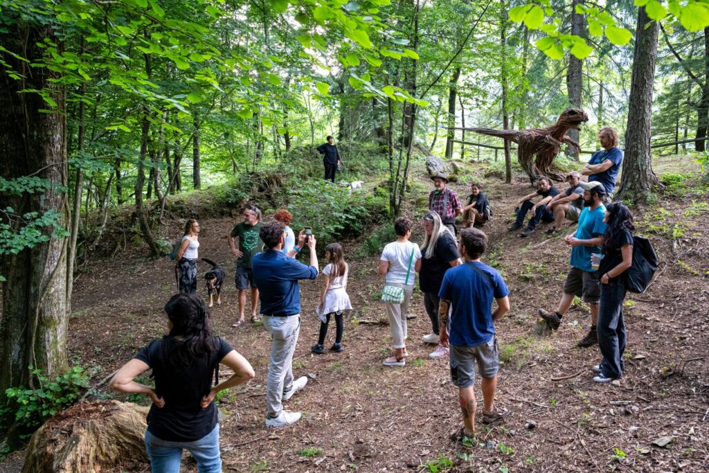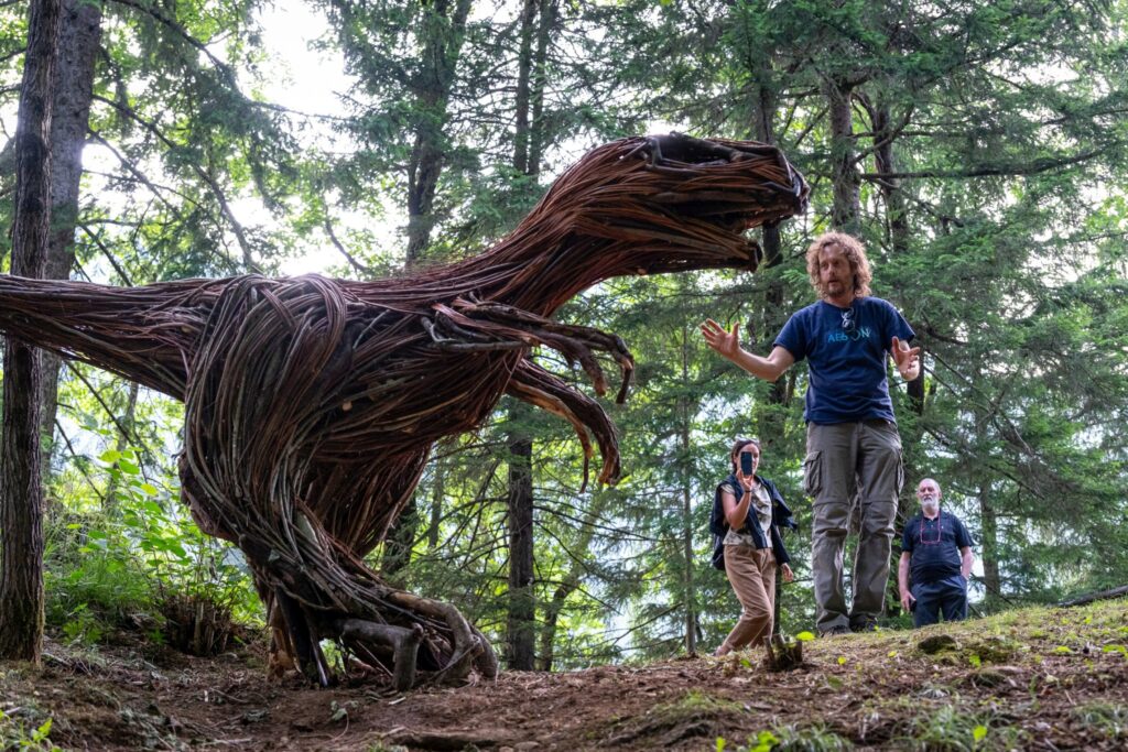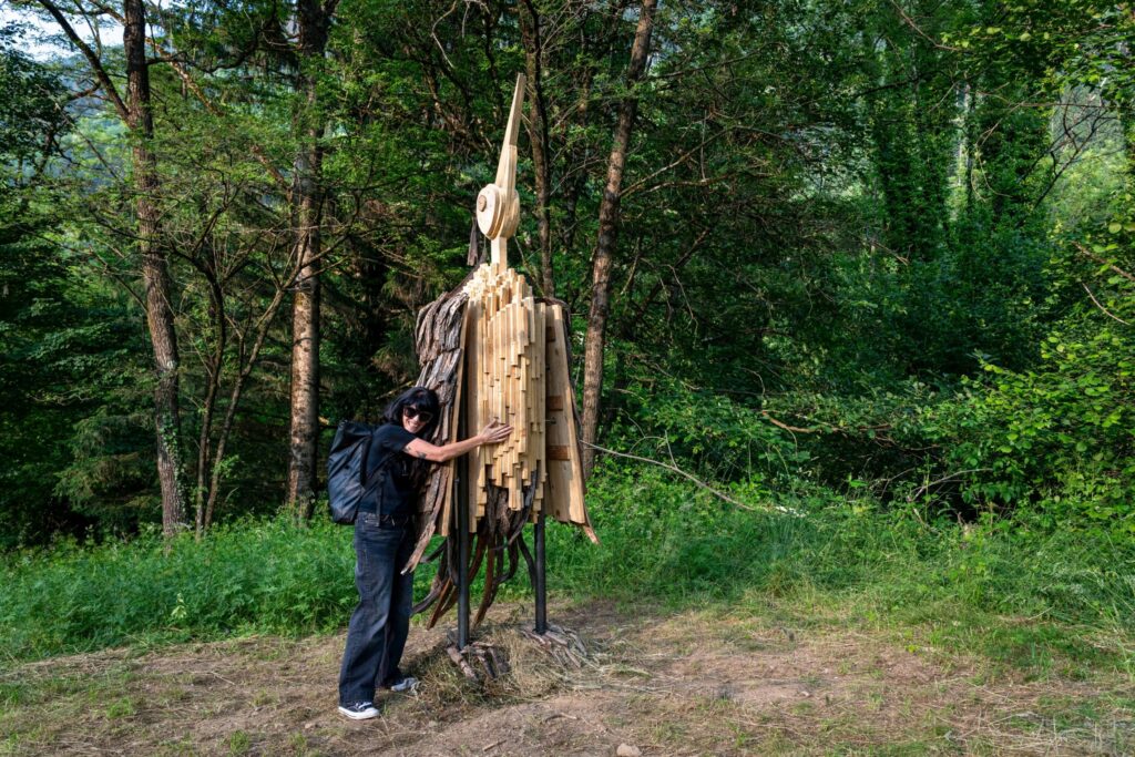 Gli 11 artisti hanno sviluppato lavori capaci di dialogare armoniosamente con il paesaggio e l’identità del luogo. Ed ecco così che, passeggiando nel fitto del bosco o incamminandosi lungo un sentiero fra i prati, ci si imbatte in Struttura 0.1 2025 di Mattia Strussiat (supporto tecnico di Michele Trevisan), Brutalibis di Marco Bogar, Denis Camuffo, Simona Cavatoni, Ali di Jacopo Sandrin, Flying di Szabo Reka, Dinosauro di Devid Strussiat, Tëdi di Stefano Devoti, Sbilf di Rodolfo Liprandi, La dama della Torre di Simone Paulin.